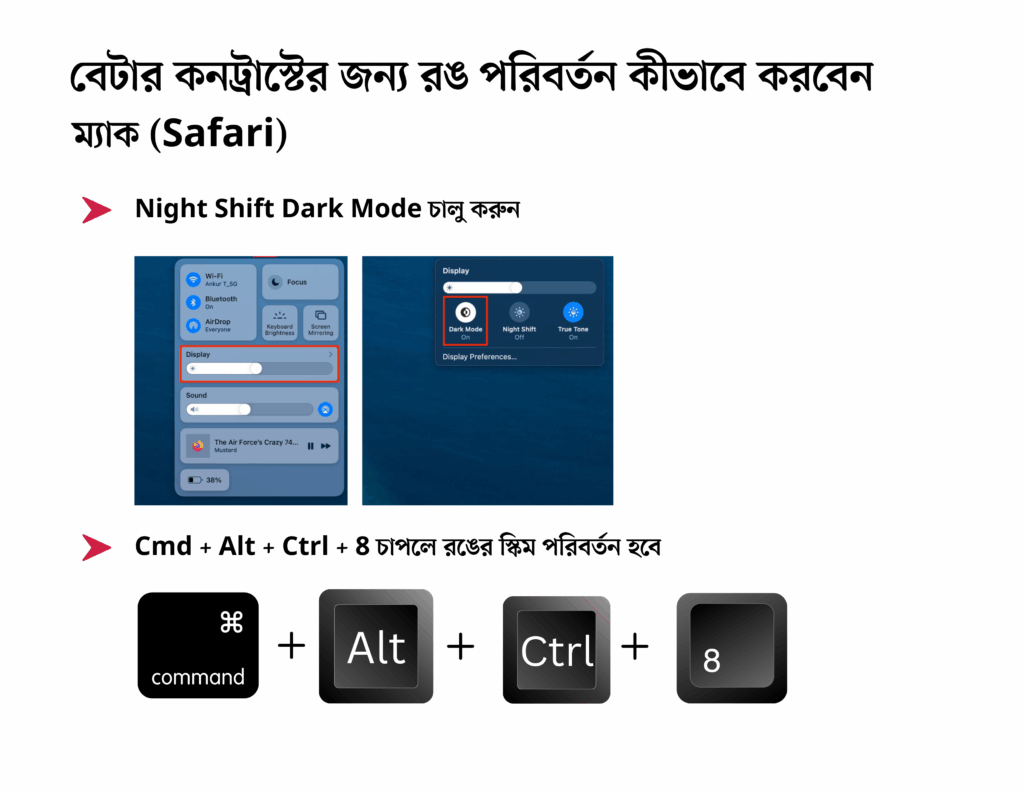 - Cmd + Alt + Ctrl + 8 চাপলে রঙের স্কিম পরিবর্তন হবে।